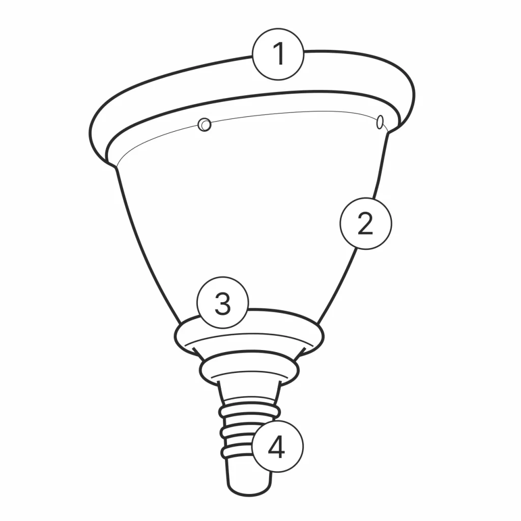 Note: We do not suggest using the stem to remove the cup, as doing so can break the stem or potentially cause pain. We additionally suggest not to pinch the stem with your fingernails, as this can also cause damage. Instead, use the stem to locate the cup, the rings to secure a grasp, and then pull on the cup itself