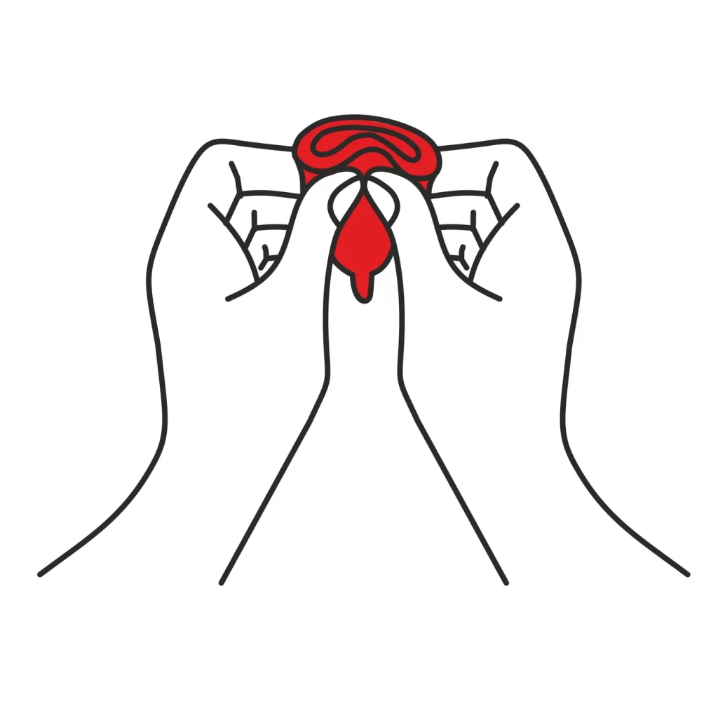 З. Squeeze the cup using your desired folding method (explained below). Then place the cup inside your body, with